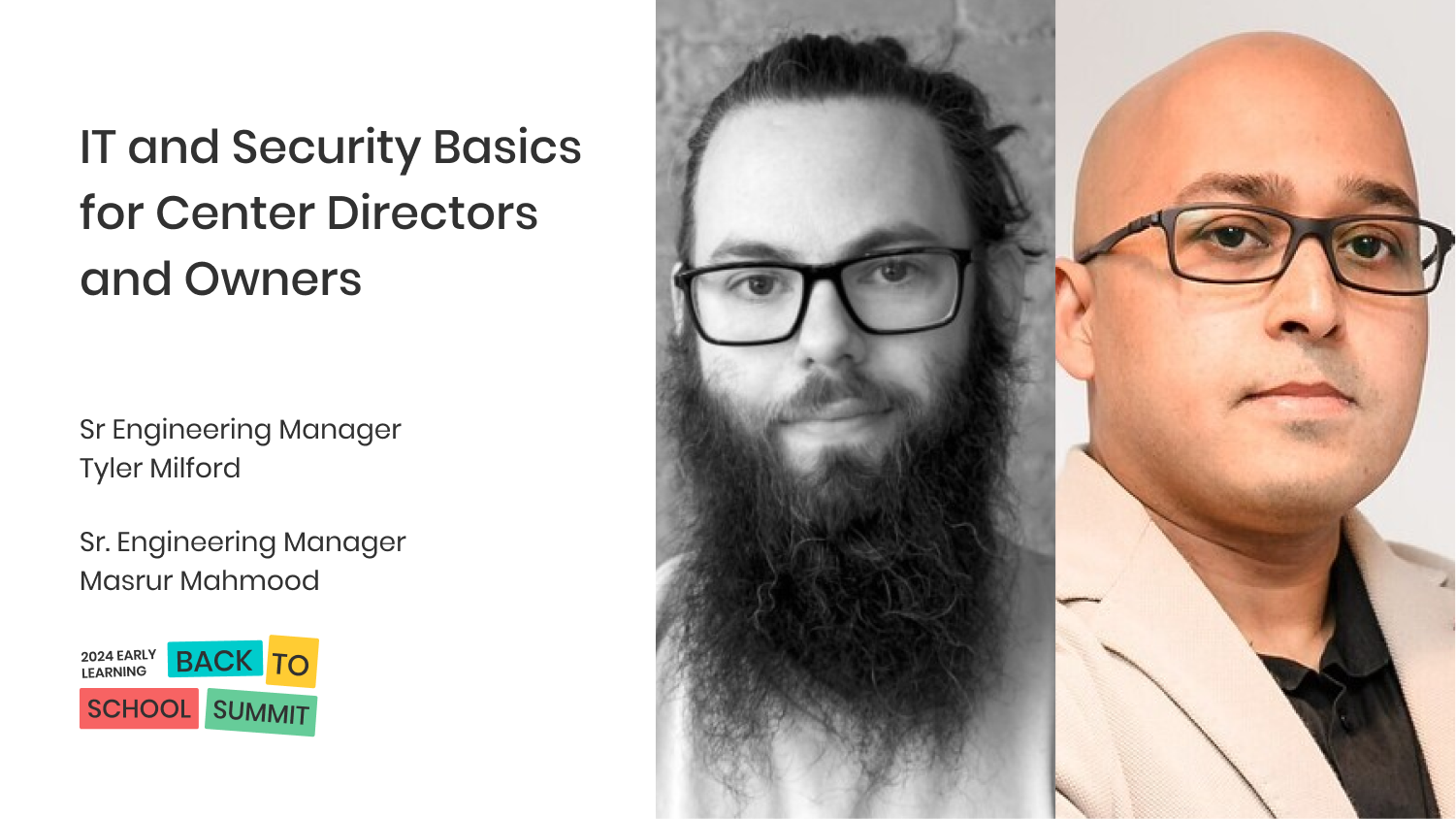 This session will focus on the foundations of IT/data security requirements that small and medium childcare center directors and owners should know and consider in making technology decisions. Our technology leaders will help explain and define things these businesses may be concerned about and will discuss how Lillio works to design for security and peace of mind.